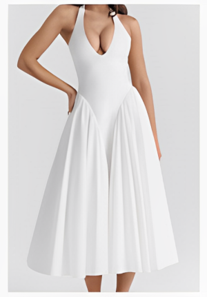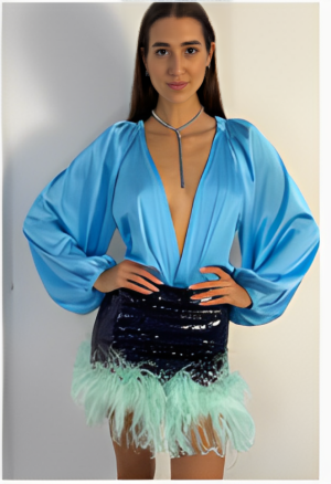 Sheer mesh with embellished pearls and V cut neckline