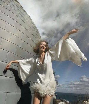 Color & Fabri:  Sheer mesh embellished in sequins and pearls